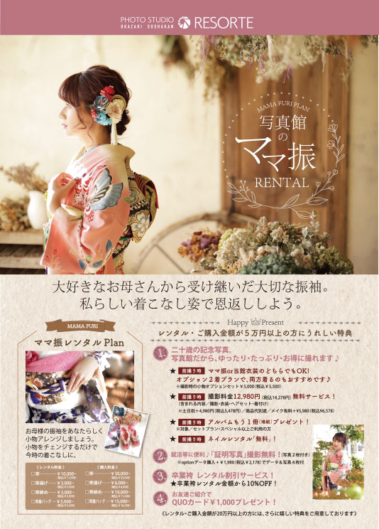 お母様が成人式で着られた振袖もぜひ着たいという方におすすめのプラン。