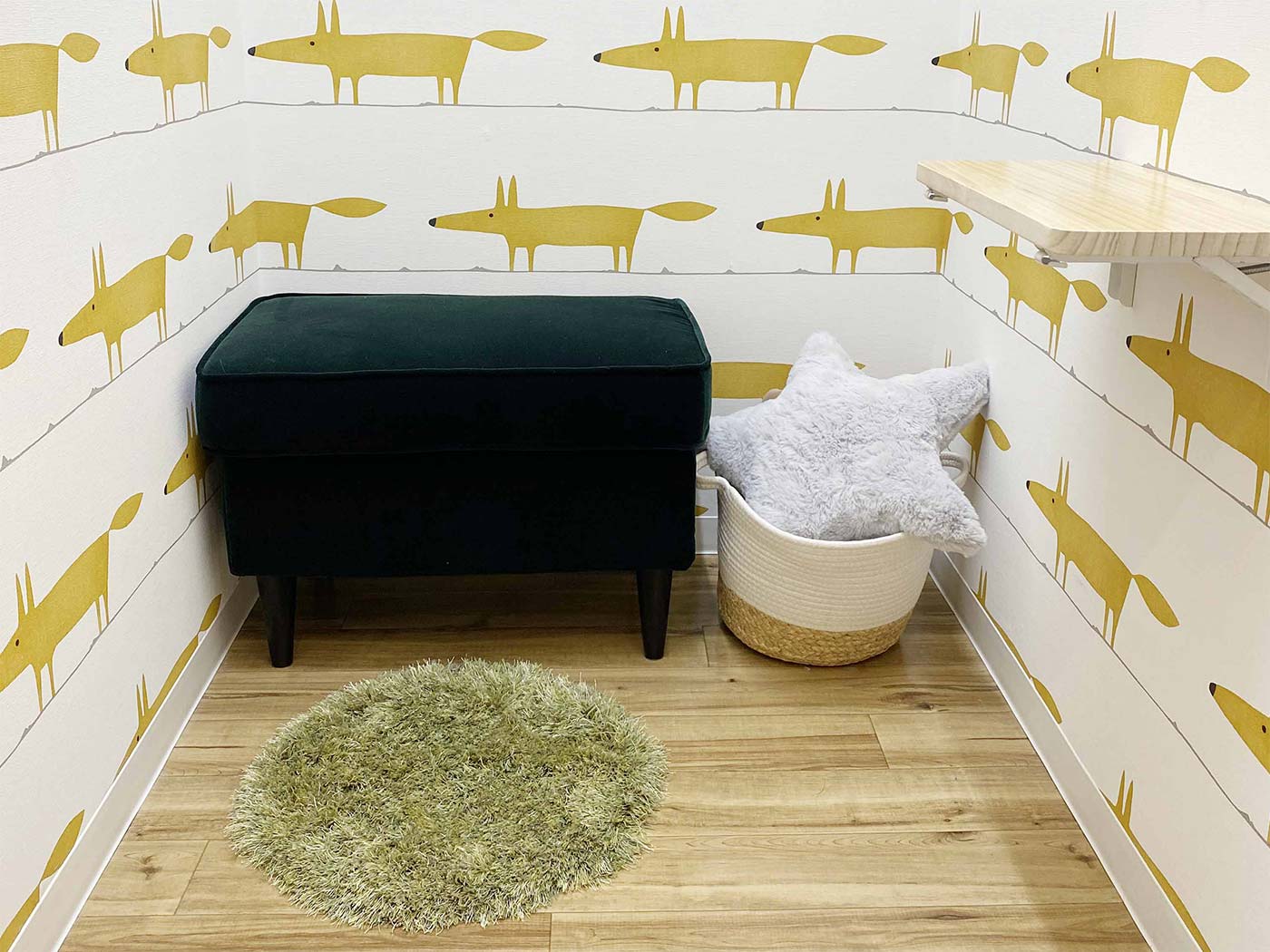 赤ちゃん撮影でお越しのお客様に、安心してご利用いただける個室です。ちょっと小さいですが、冷暖房完備です。